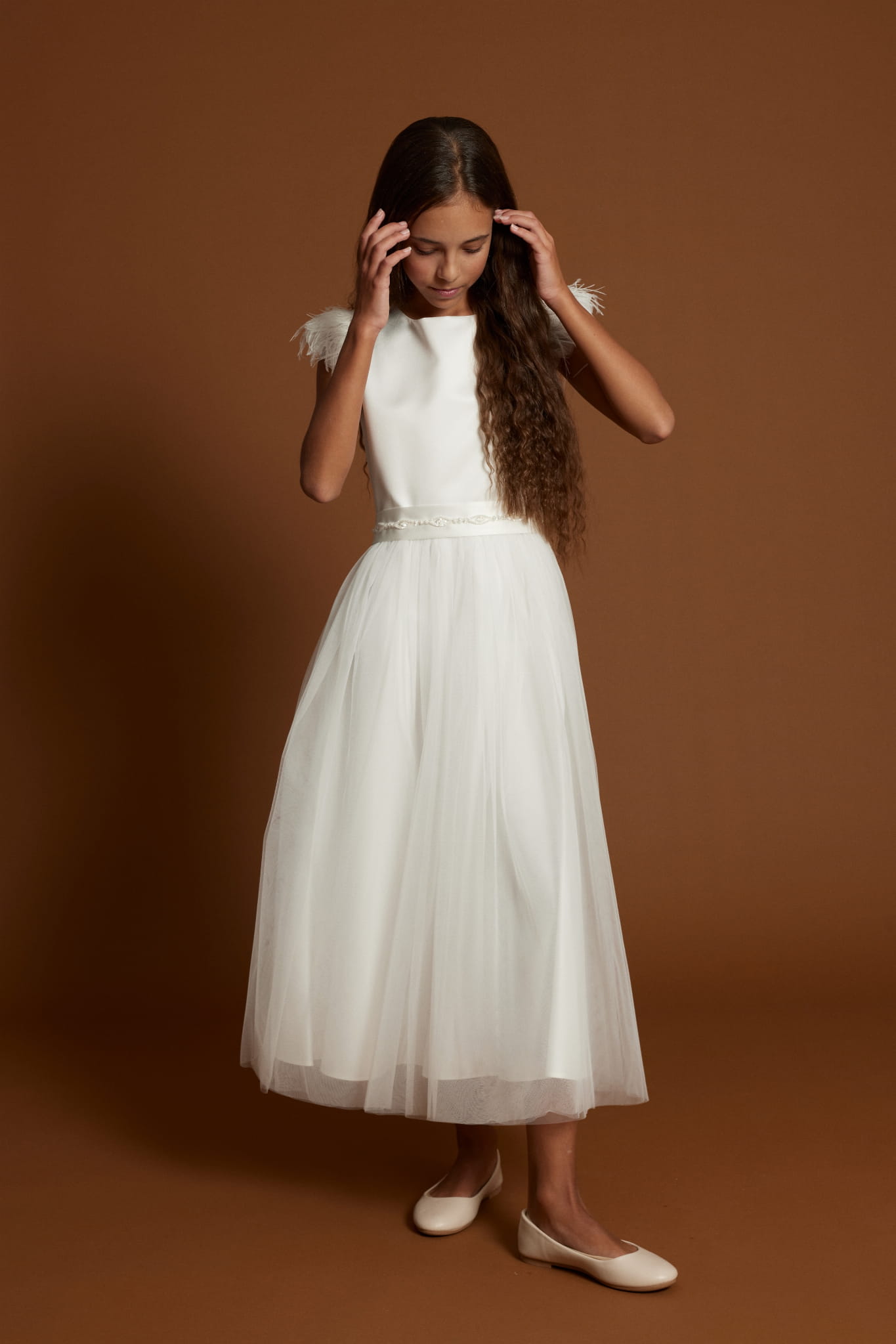 Kaunis, tyylikäs juhlamekko tytölle Ayla kermanvalkoinen/ecru.